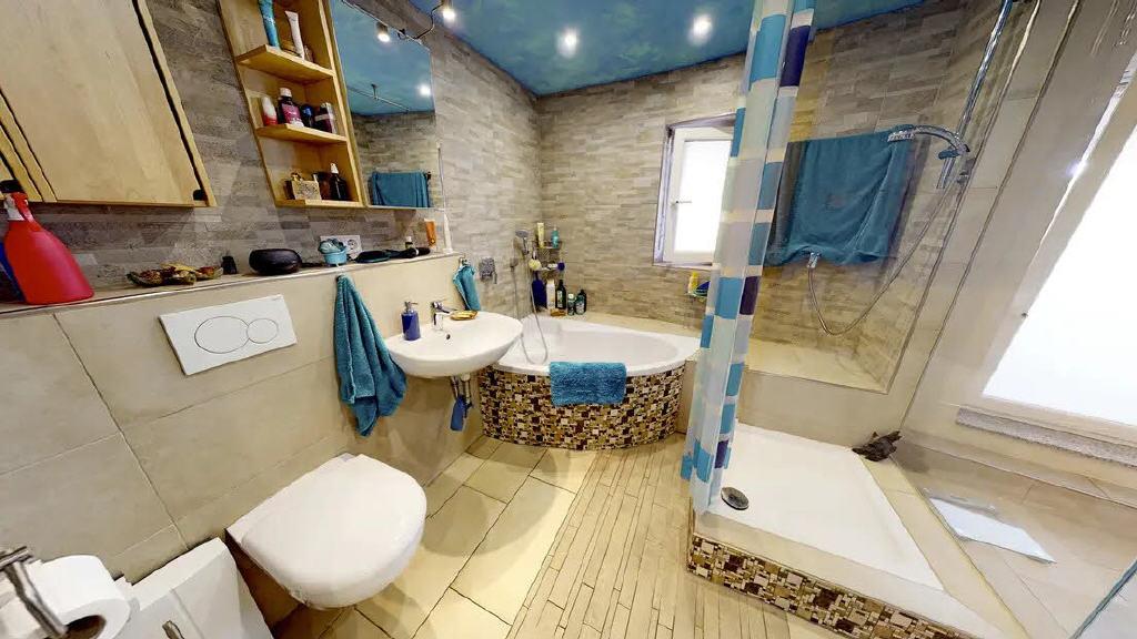 - Bad mit Eckbadewanne und großer Dusche
