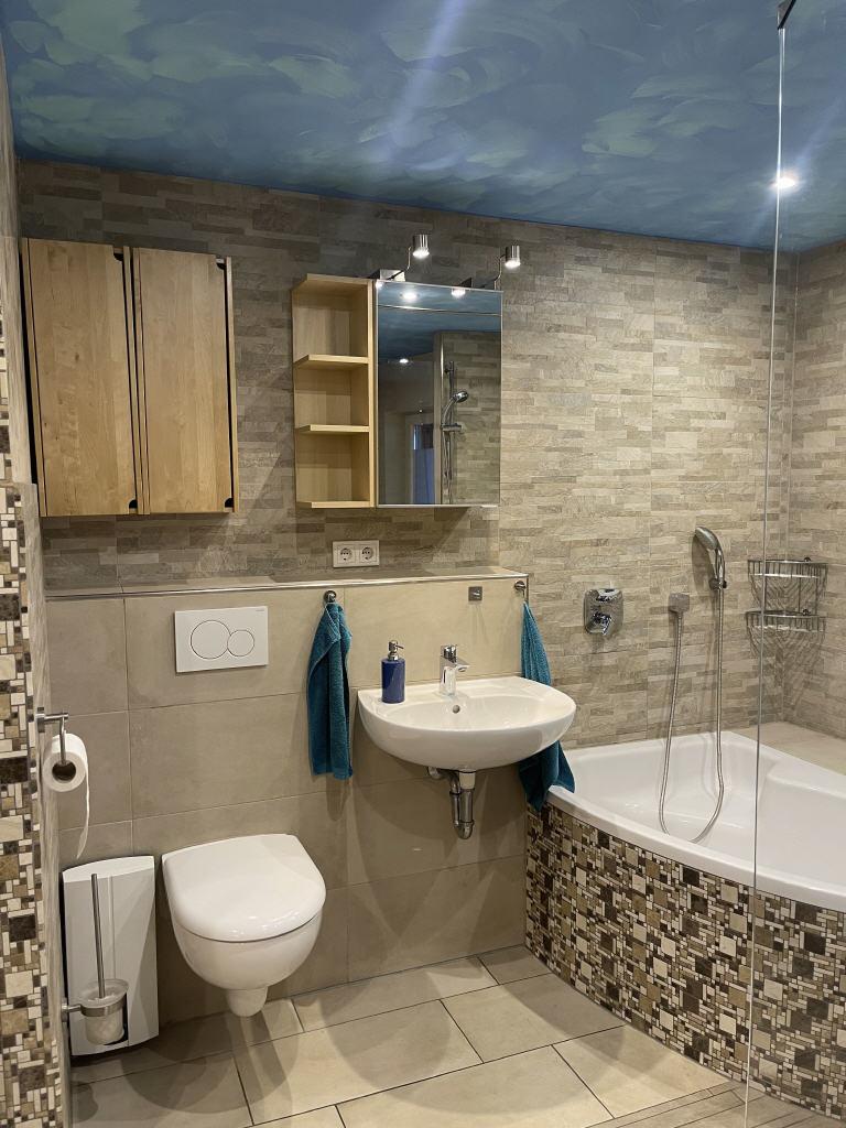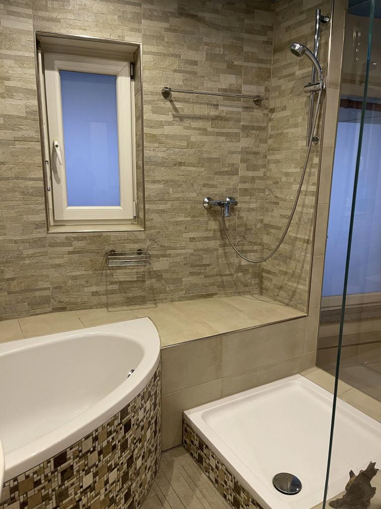 - Bad mit Eckbadewanne und großer Dusche