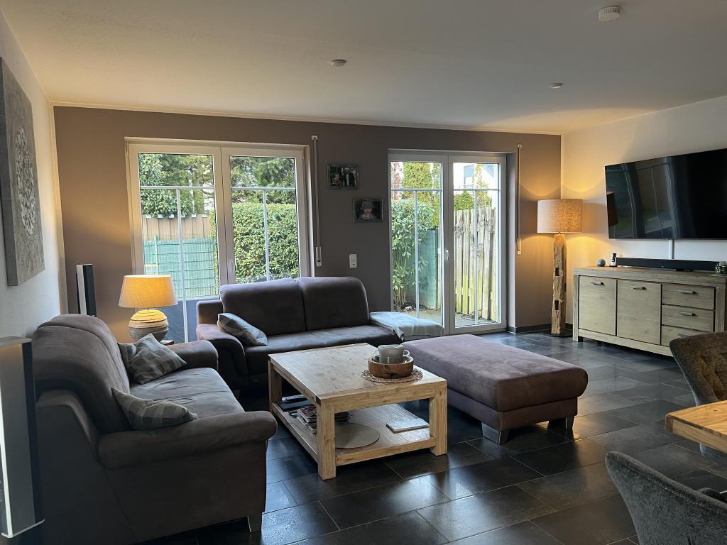 Der Garten ist sehr pflegeleicht angelegt, auf der Terrasse kann man den Feierabend geruhsam ausklingen lassen. Der große Vorgarten kann noch nach Wünschen individuell gestaltet werden!